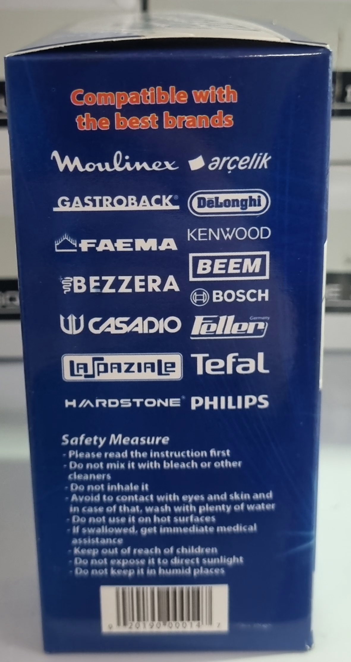 این نوع جرمگیر معمولاً بر پایه اسید سیتریک خوراکی یا ترکیبات مشابه و ایمن ساخته میشود که برای تماس غیرمستقیم با آب آشامیدنی مناسب است و رسوبات آهکی (سفیدک) داخل کتری و قوری را حل میکند.